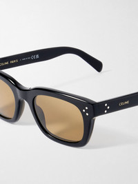 Those in the know will recognize CELINE Eyewear's sunglasses by the signature '3 Dots' motif at the temples. Made from black acetate in a classic D-frame shape, they have brown lenses and the logo in gold lettering along the arms. Details & Care - Black acetate - Come with a case - 100% UV protection