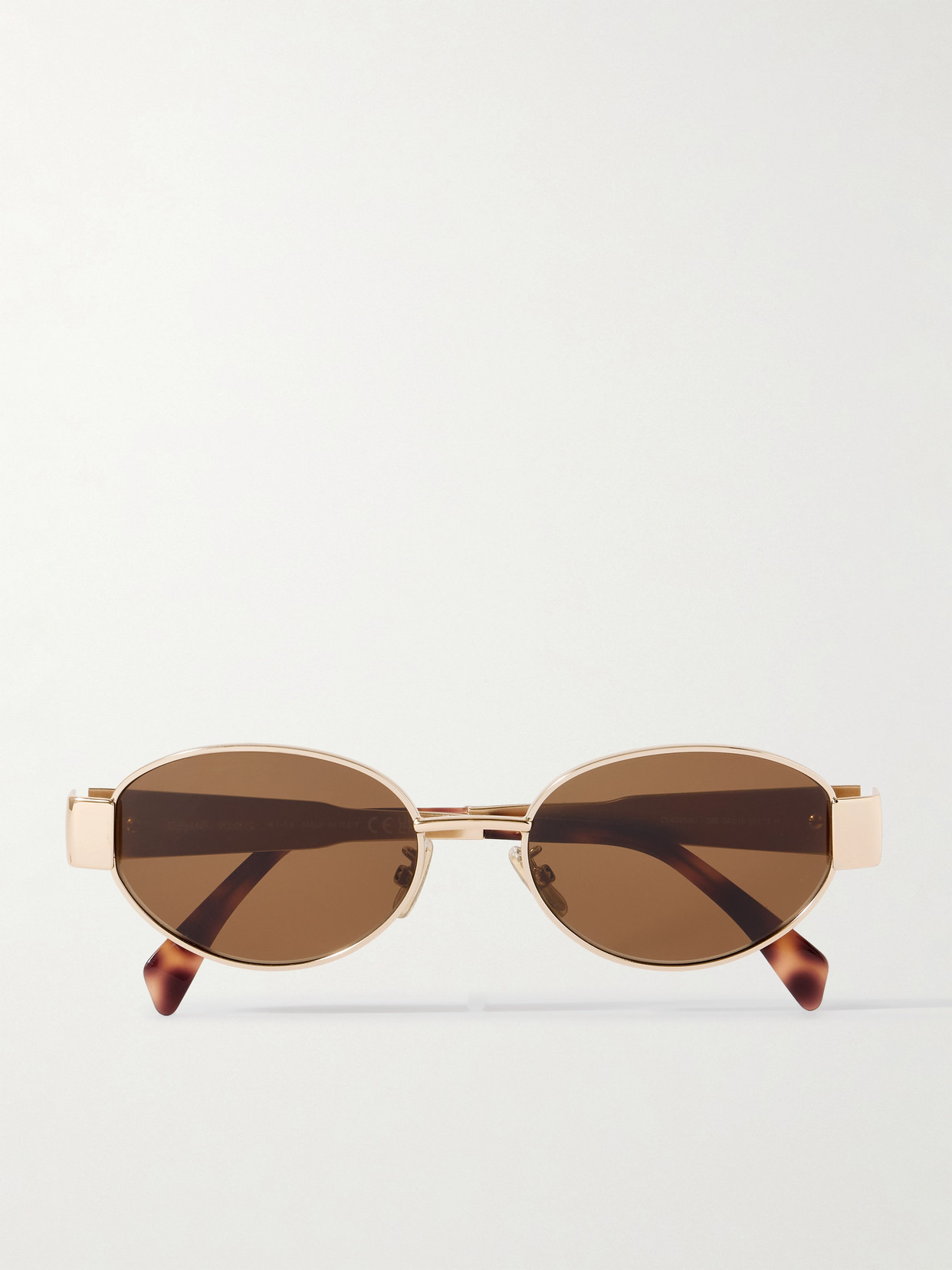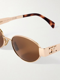 CELINE Eyewear's sunglasses have timeless oval frames. Fitted with green lenses, they're made from rose gold-tone metal contrasted by tortoiseshell acetate tips and have the 'Triomphe' logo embossed on the arms.