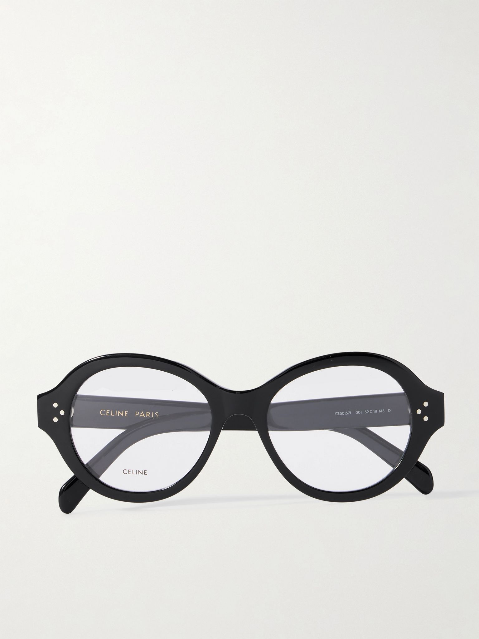 CELINE Eyewear's glasses are designed with oversized round frames and detailed with the signature three-dot motif at the temples. They’ve been made in Italy from black acetate and have clear lenses that can be swapped for UV-protective ones. Details & Care - Black acetate - Come with a case - Can be fitted with prescription or UV-protective lenses