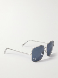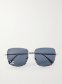 CELINE Eyewear's square-frame sunglasses are fitted with blue-tinted lenses featuring crystals arranged to depict the label's 'Triomphe' logo. They're made from silver-tone metal engraved with the moniker on the slim arm and have adjustable nose pads and acetate temple tips for a comfortable fit.