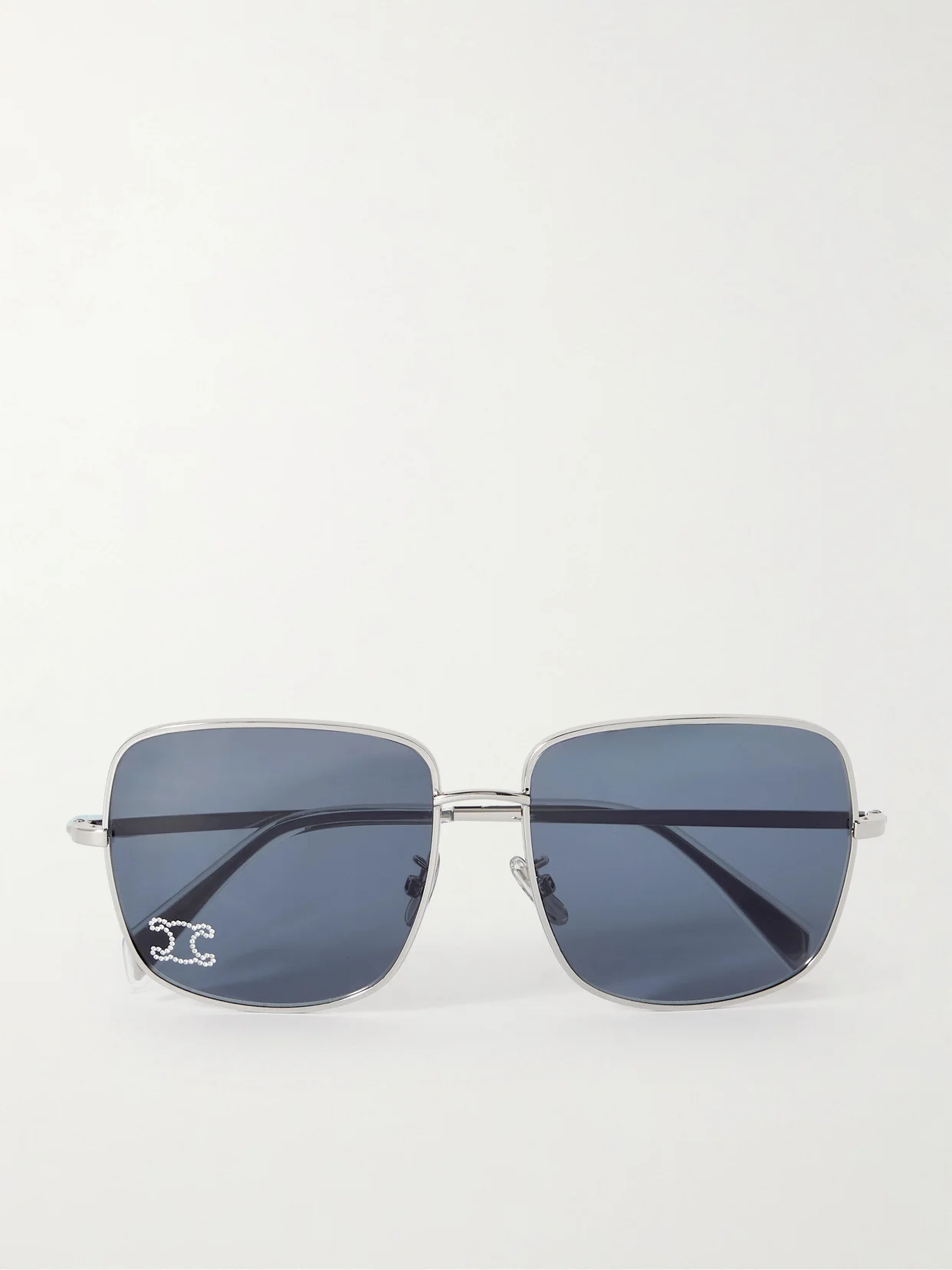 Triomphe Crystal-embellished Square-frame Silver-tone Sunglasses