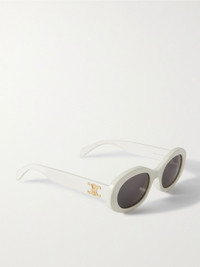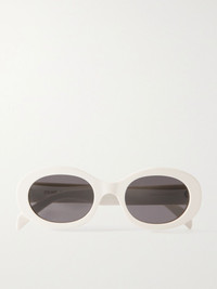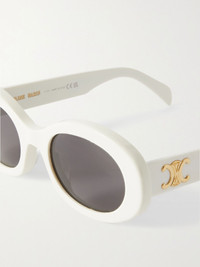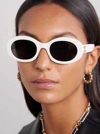CELINE Eyewear's sunglasses have been made in Italy from white acetate and have modern oval-shaped frames. They're adorned with an archival logo plaque - first introduced by the label's founder in 1973 - and fitted with dark lenses. Details & Care - White acetate - Come with a case - 100% UV protection