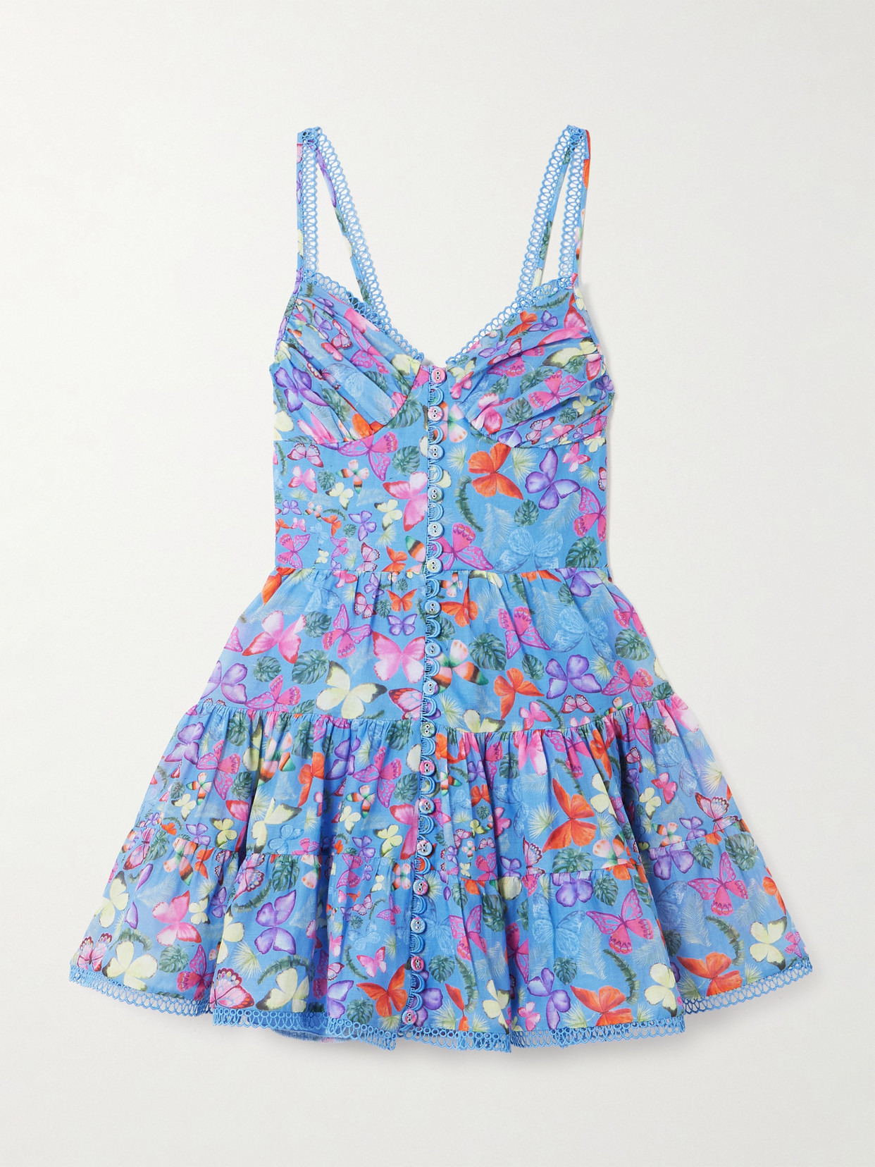 Charo Ruiz's 'Angy' dress is printed with colorful florals and butterflies, making it so perfect for your upcoming vacations. It's cut from cotton-blend with gathered cups, a full, tiered skirt and button-through front. Style yours with pumps and a mini bag.