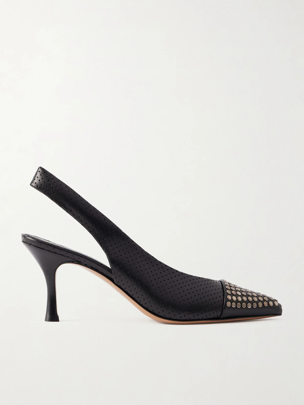 Chloe reinterprets classic femininity with a modern, edgy sensibility with these 'Alba' slingback pumps. Made from leather, they have pointed toes punctuated with silver-tone studs and perforation along the sides. Wear them with tailored pants or a fluid midi dress to let them command attention.