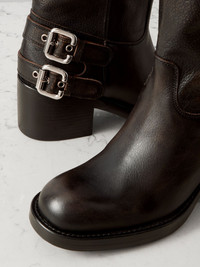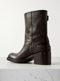 Buckled textured-leather ankle boots Black
