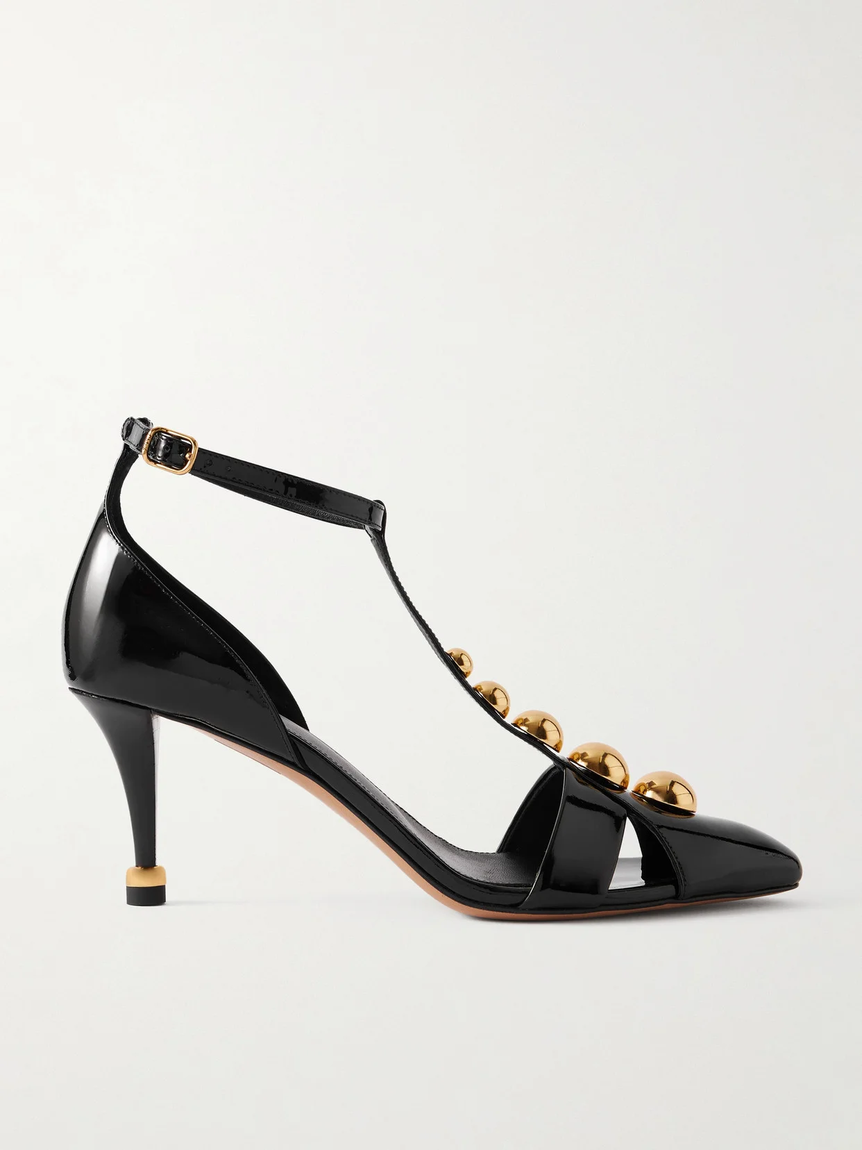 Opt for retro glamour with Chloe's 'Cleiat' pumps. They're made from glossy patent-leather and have gold-tone embellishments along the T-bar strap. The 70mm heels offer perfect lift. Small to size. See Size & Fit notes.