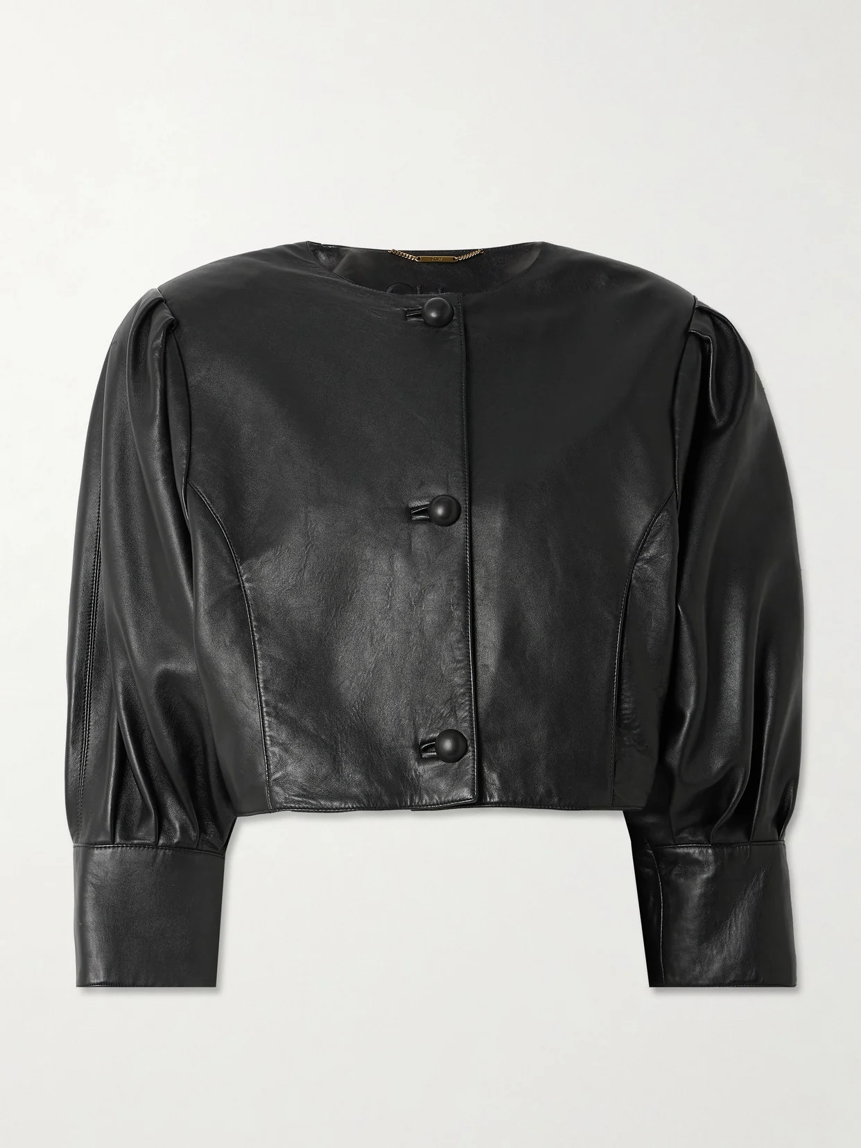 Chloe's jacket is made from buttery leather that'll soften beautifully over time. The cropped length and cuffed, gathered sleeves give it an '80s feel. Wear yours with high-rise pants. Lower-Impact Materials. This product is made using at least 50% lower-impact materials or ingredients. Find out more about our NET SUSTAIN criteria here.