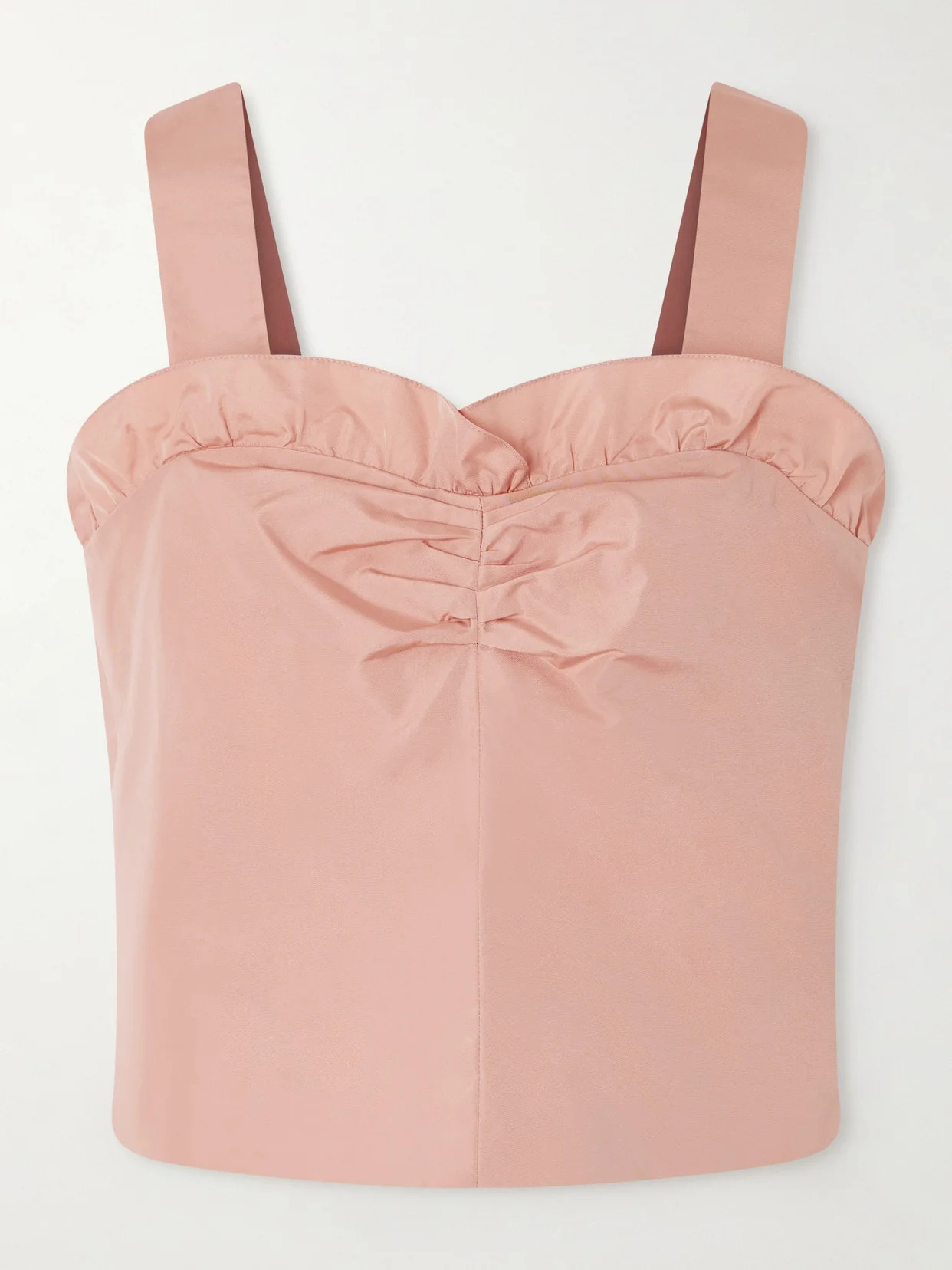 Chloe's top captures the label's romantic sensibility with a playful twist. Made from lustrous pink taffeta, it's gathered through the bust and framed by delicate ruffles along the sweetheart neckline. The cropped silhouette pairs perfectly with high-rise tailoring or floaty skirts.