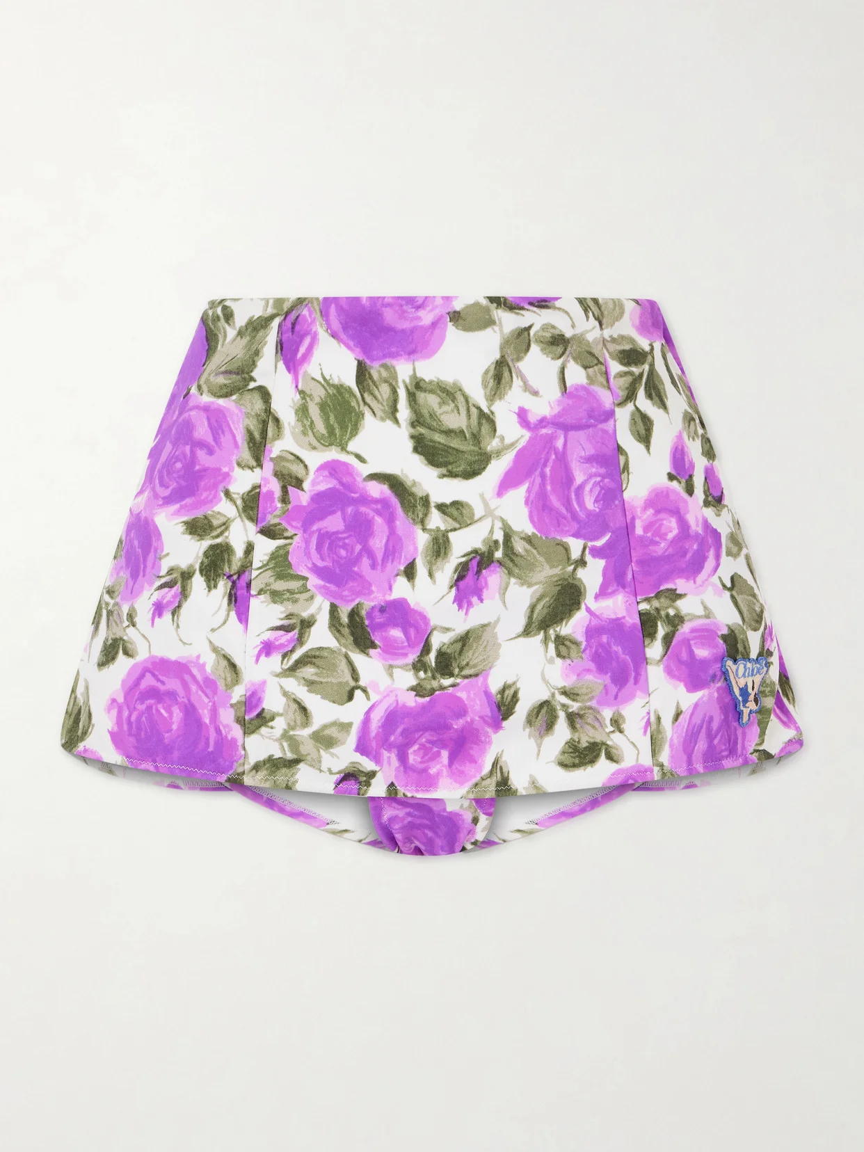 Chloe's bikini briefs are designed with a mini skirt overlay - the chicest way to create more coverage. First seen on the Summer '26 runway, they're made from stretch-fabric printed with beautiful roses and appliqued with a logo patch just above the hem.