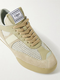 Kick leather and suede-trimmed mesh sneakers Army green