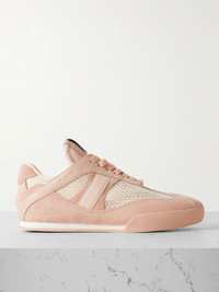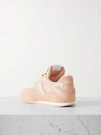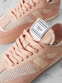 Taking cues from both boxing and ballet shoes, Chloe’s retro ‘Kick’ sneakers have been crafted in Italy from plush suede, breathable mesh and supple leather. They're set on lightweight soles with a discreet wedge for added height and finished with an appliqued logo patch. Size & Fit - Fits true to size, take your normal size - Italian sizing Details & Care - Rubber sole measures approximately 15mm/ 0.5 inches - Peach suede, cream and peach leather, cream mesh - Lace-up front
