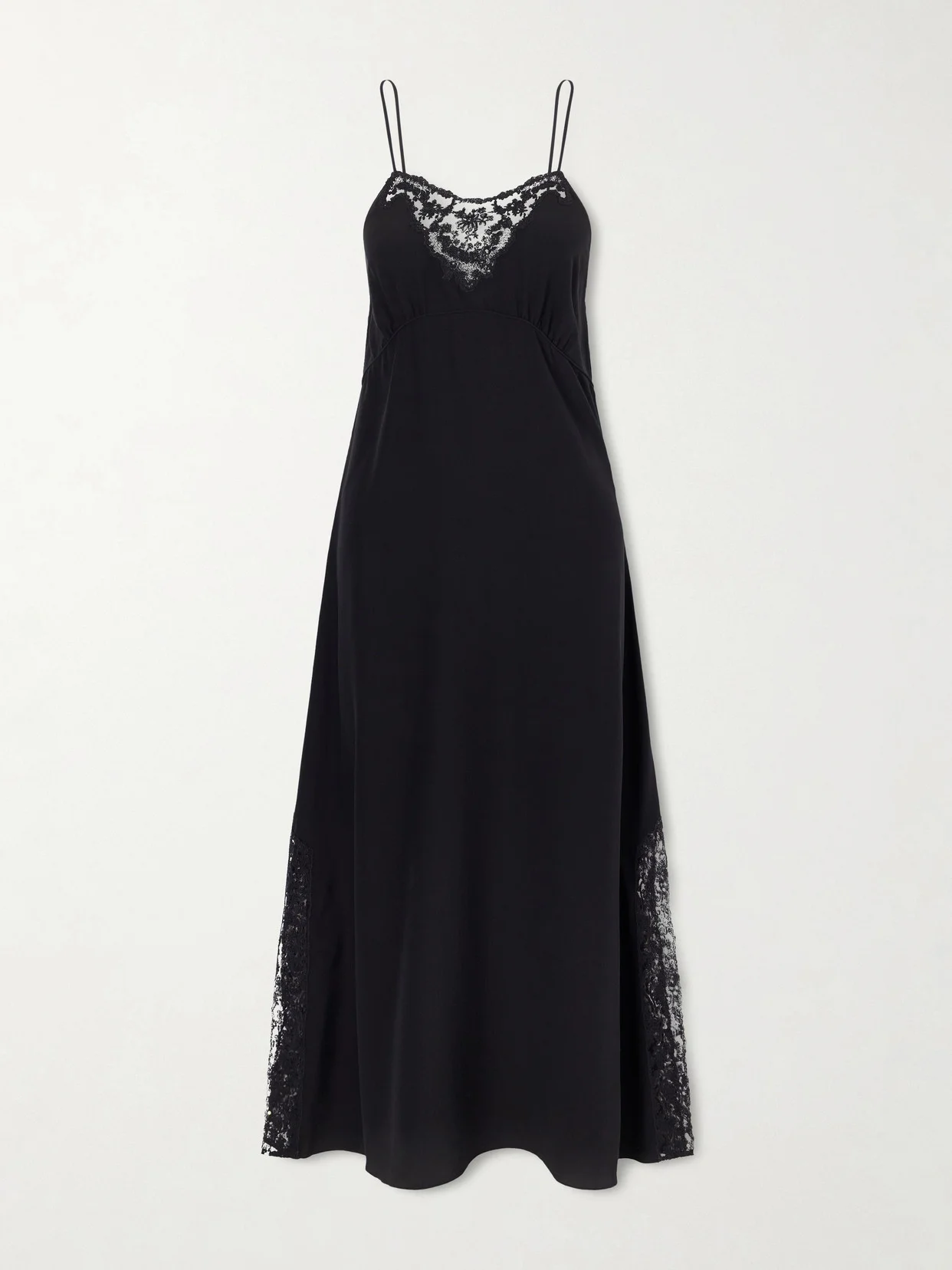 Lace-trimmed Silk Crepe De Chine Midi Dress