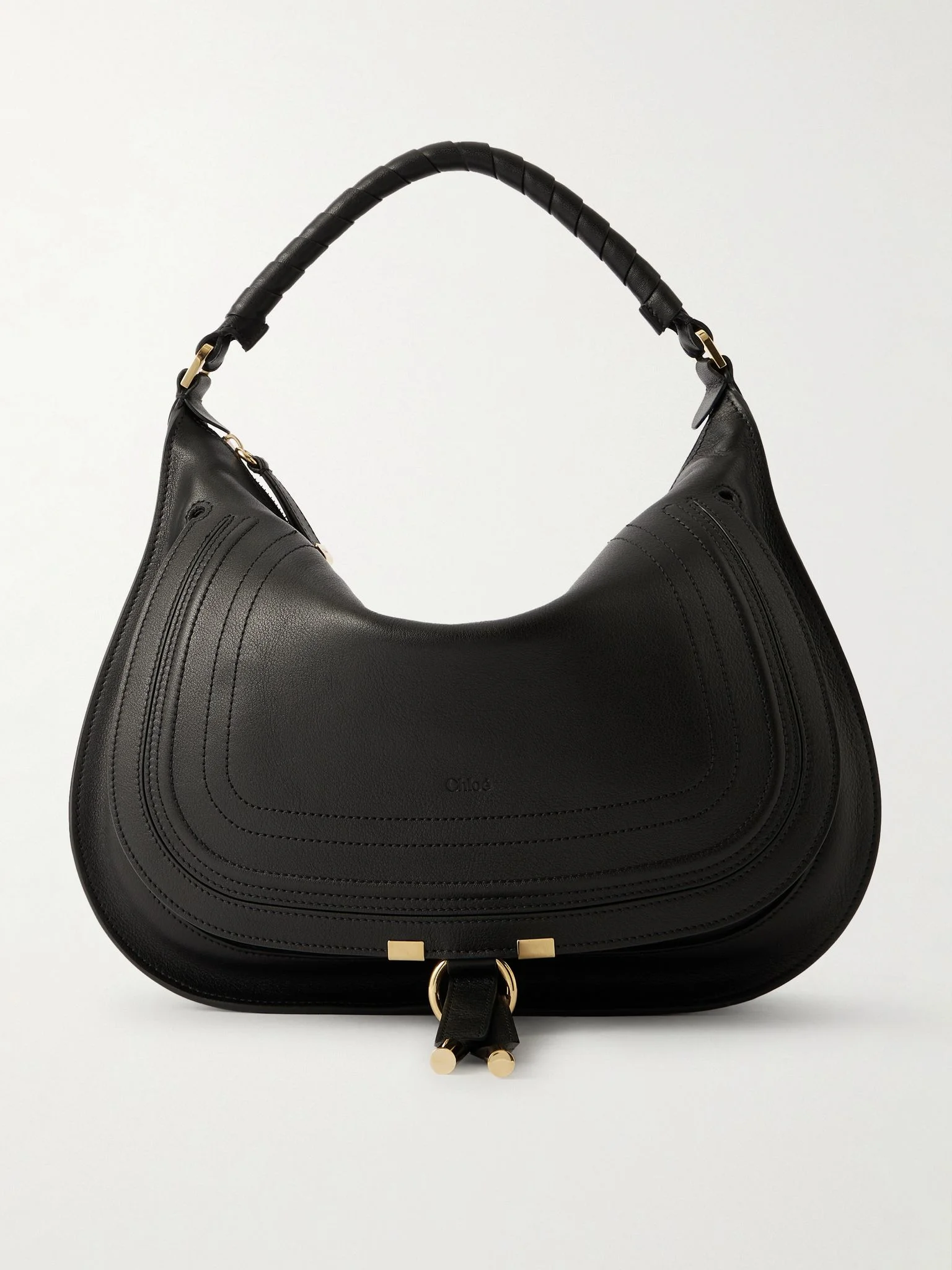 Chloe's best-selling 'Marcie' tote may be updated in fresh hues each season, but the signature details - like the equestrian-style stitching and cool saddle shape - remain the same. This version is made from supple leather and has a spacious suede-lined interior that will easily fit your daily essentials plus a small water bottle or scarf. Carry yours by the hand-wrapped top handles or detachable shoulder strap. Lower-Impact Materials. This product is made using at least 50% lower-impact materials or ingredients. Find out more about our NET SUSTAIN criteria here. Details & Care - Material: calf hair - Lining: fabric - Internal details: internal slot pocket - Closure: self-tie closure - Shoulder strap - Made in Italy - Comes with: dust bag - Colour: black