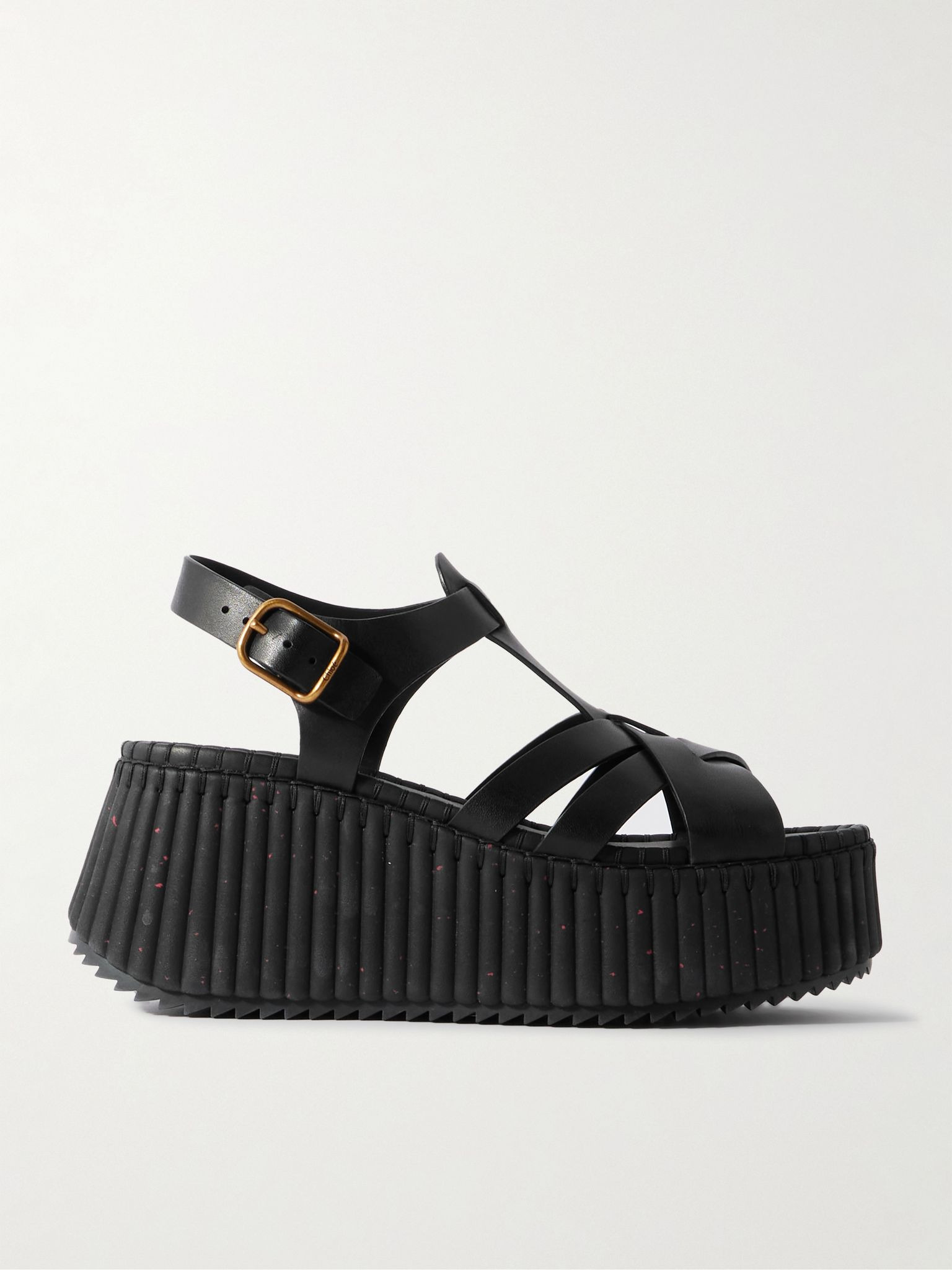 Chloe's 'Nama' sandals are set on chunky, ridged platform soles - a closer look reveals the subtle whipstitching, which is a brand signature. They're made from black leather in a cage-like design and have wide, adjustable straps. Size & Fit - Fits true to size, take your normal size - Italian sizing Details & Care - Rubber platform sole measures approximately 80mm/ 3 inches - Black leather (Cow) - Buckle-fastening ankle strap