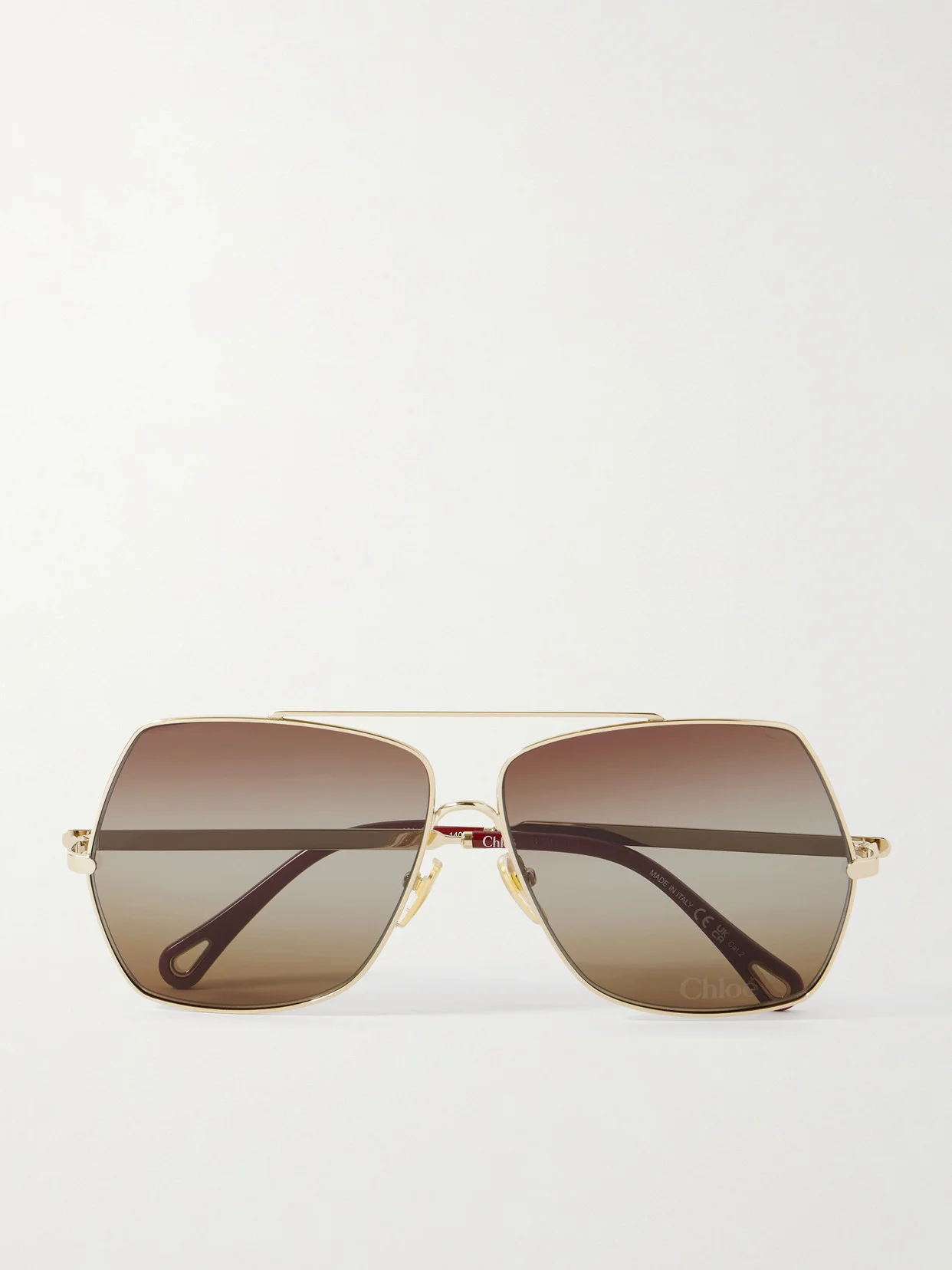CHLOE Eyewear's sunglasses have oversized frames and double brow bars inspired by aviator styles. They've been made in Italy from gold-tone metal and fitted with gradient lenses subtly branded with the moniker.
