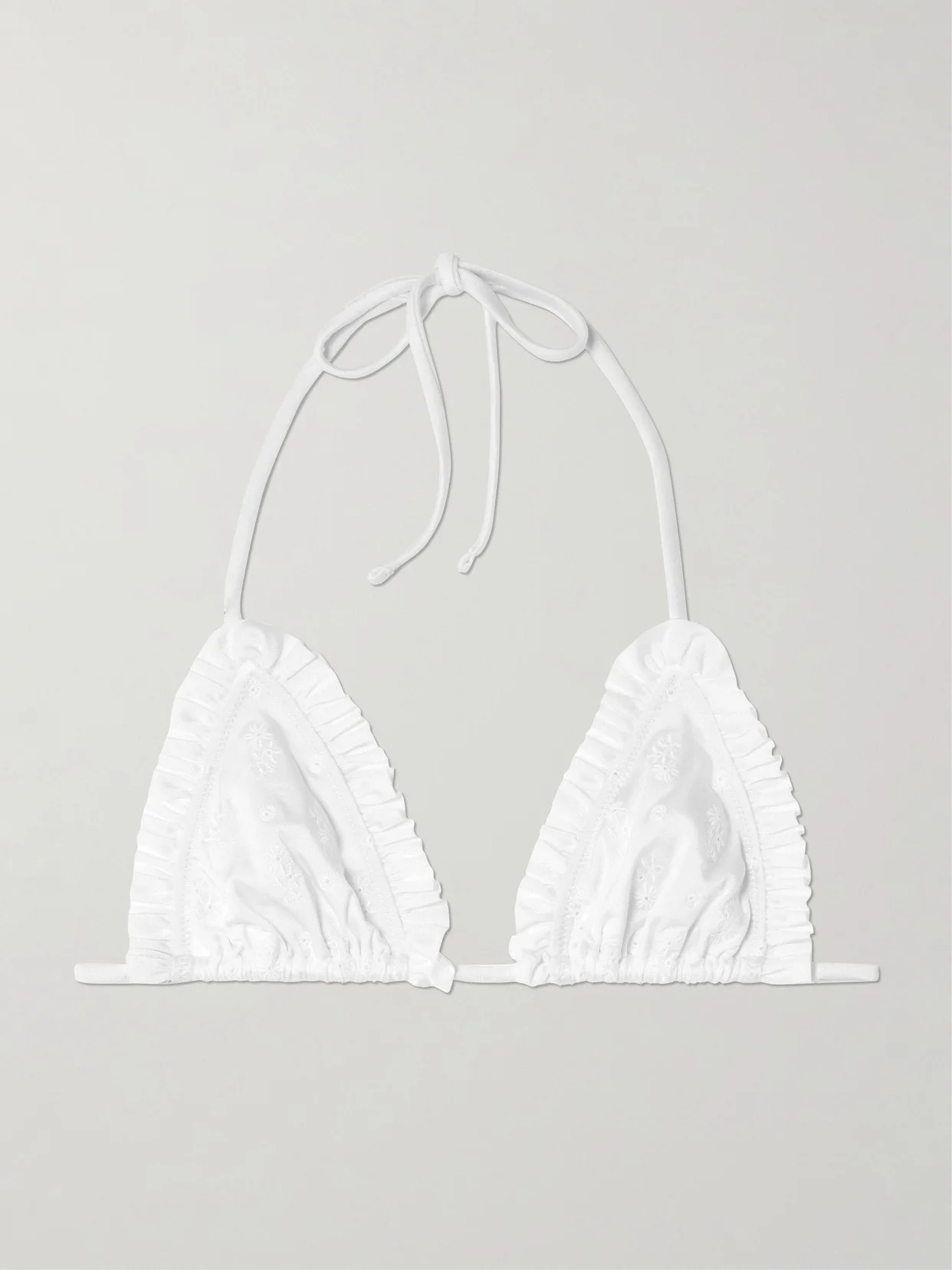 Ruffled Broderie Anglaise Triangle Bikini Top