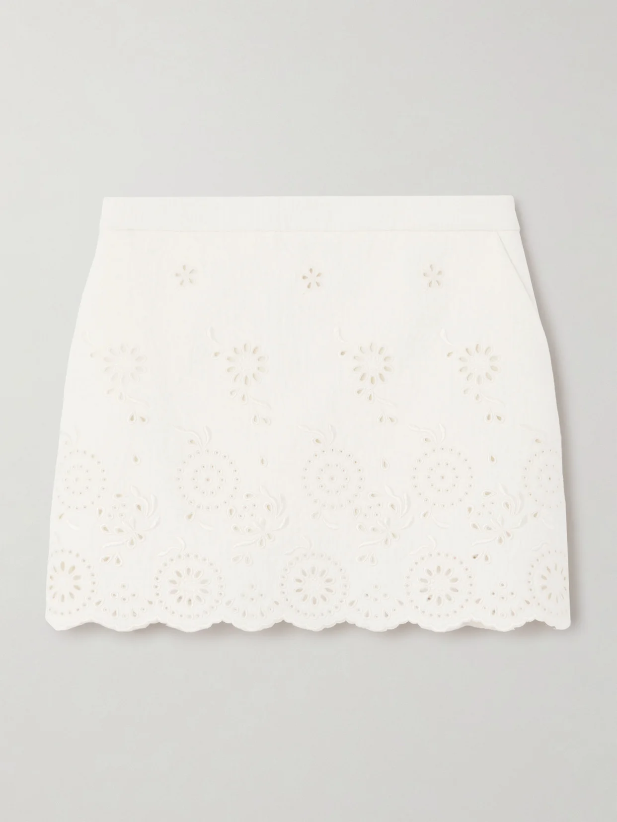 Scalloped Quilted Broderie Anglaise Cotton-blend Mini Skirt