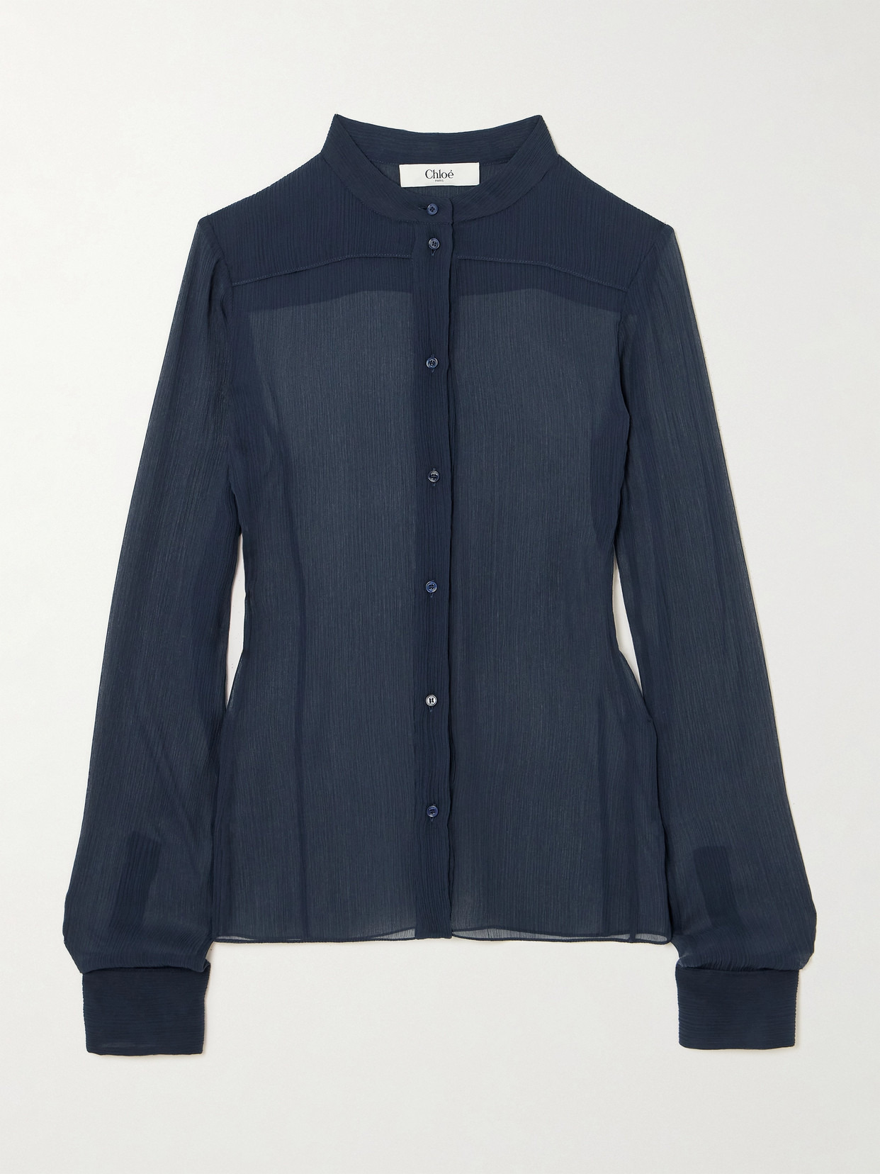 For her debut collection at Chloe, Chemena Kamali built on the brand's bohemian aesthetic by adding tailored touches. A perfect example, this shirt is made from sheer silk-crepon that's cut for a refined, slim fit with a layered yoke. Leave a few of the mother-of-pearl buttons undone for a more sultry look.