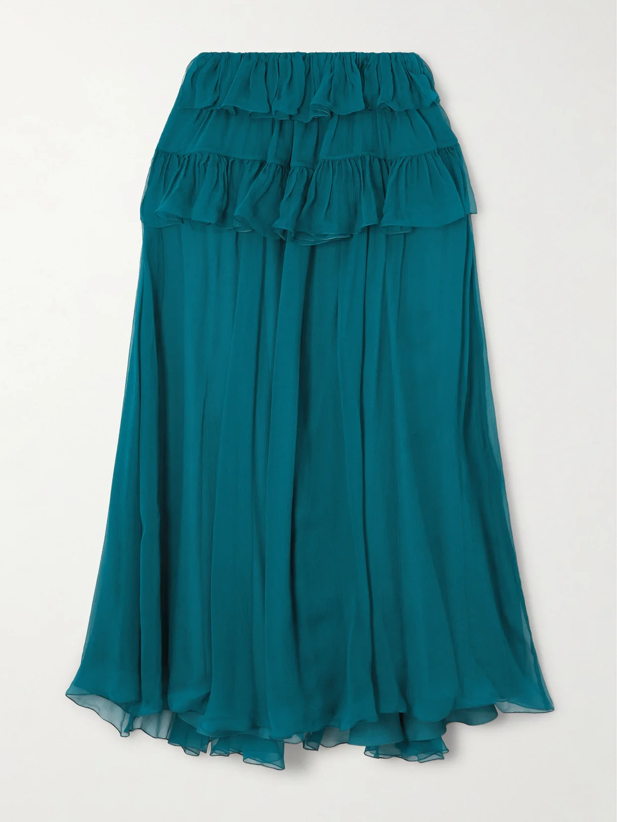Chloe's skirt is cut from organic silk-mousseline in a mermaid-like shade of teal. It has a tiered front and descends to a longline sweeping maxi hem. Wear yours low on the hip with one of the brand's ruffled blouses. Lower-Impact Materials. This product is made using at least 50% lower-impact materials or ingredients. Find out more about our NET SUSTAIN criteria here.
