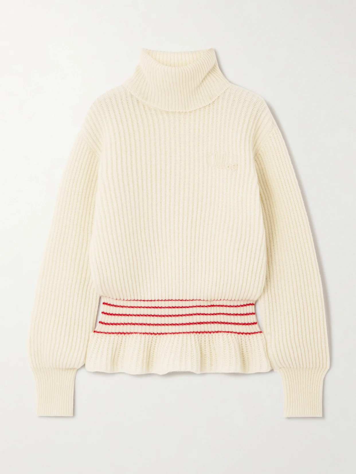 Chloe re-imagines the classic turtleneck sweater with a striped peplum hem that adds distinct femininity. It's made from a ribbed wool and mohair-blend for a relaxed fit with dropped shoulder seams and tapered cuffs.