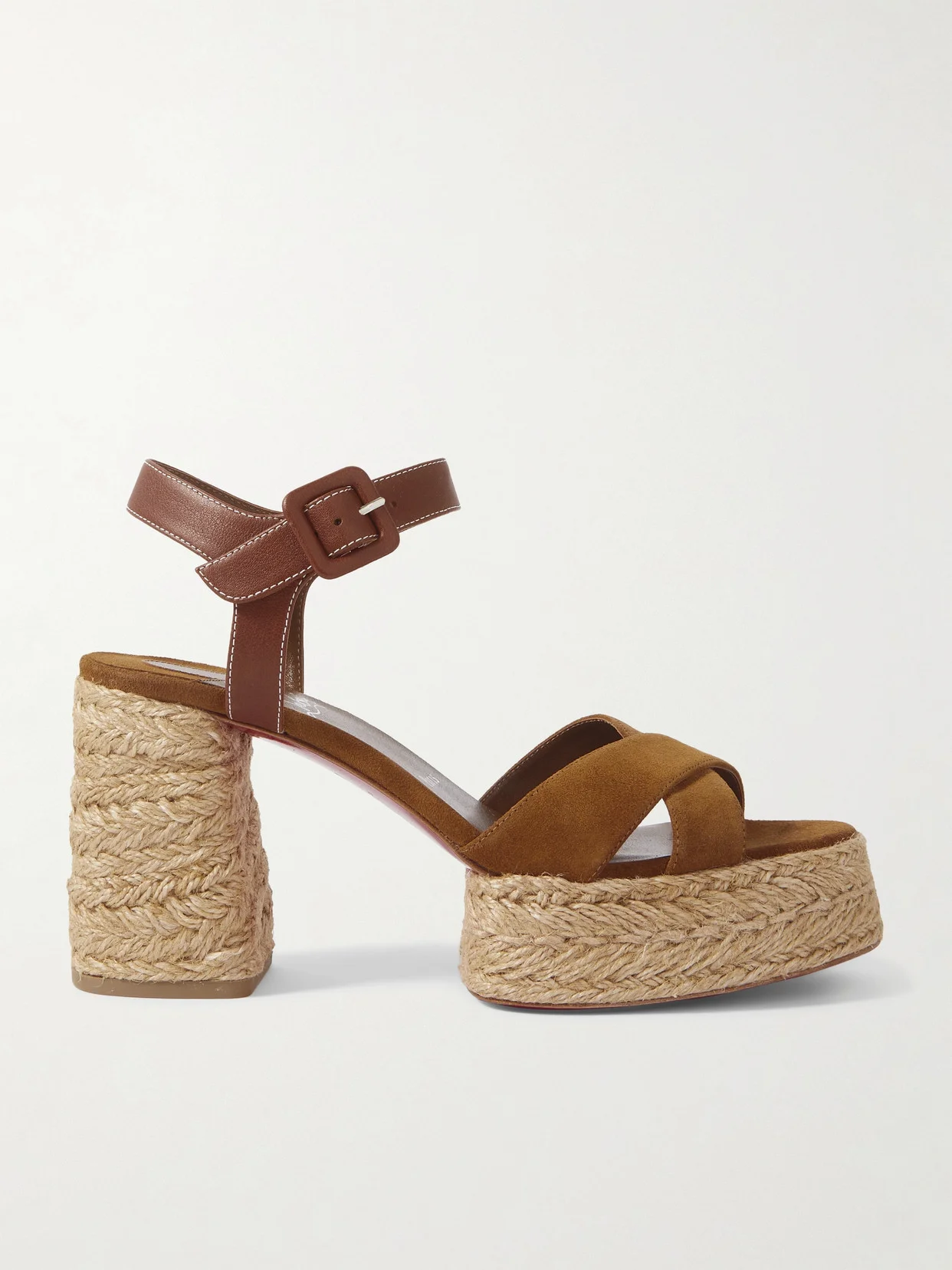 Christian Louboutin's 'Calakala' sandals have classic espadrille soles with a little lift. They have crossover straps made from brown leather and suede and fasten with adjustable buckles. Wear yours with summer dresses, cropped pants and everything in-between.