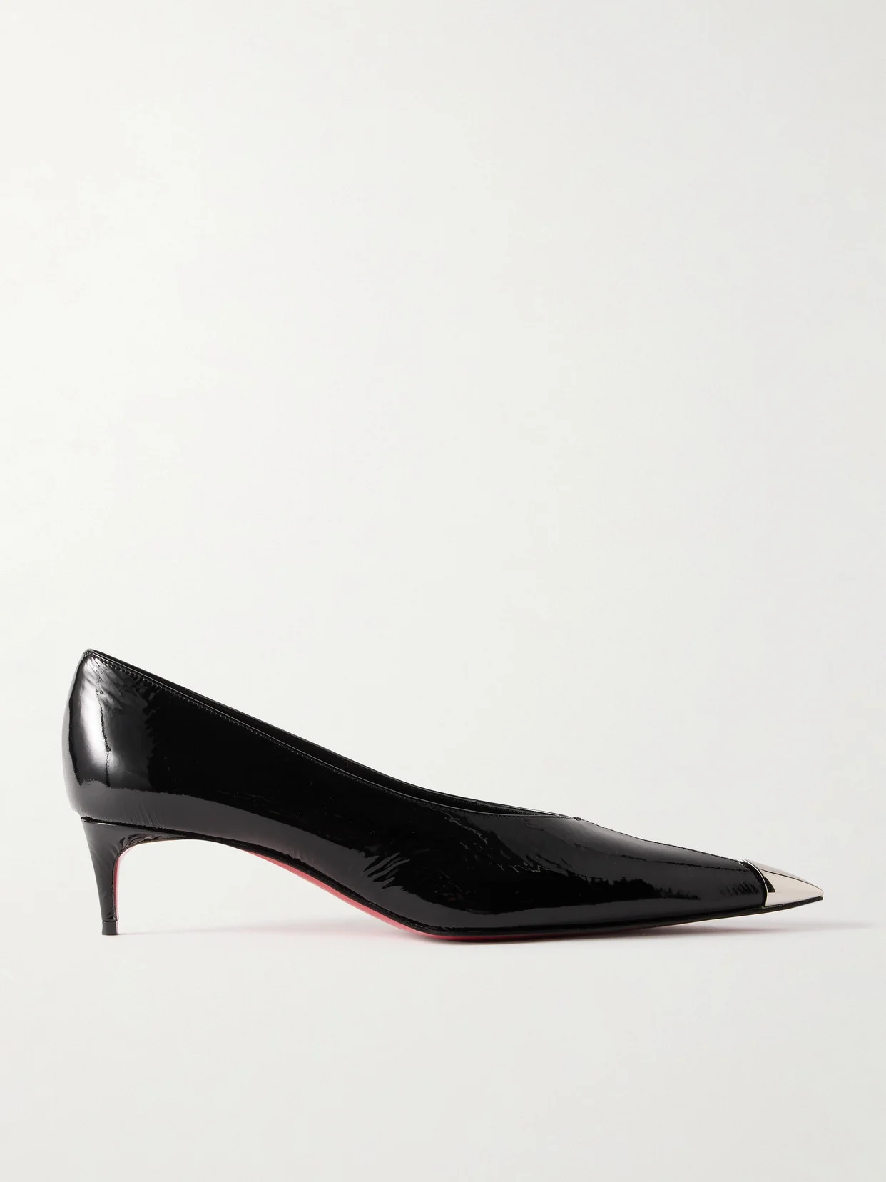Christian Louboutin's 'Katissima' pumps have sharp pointed toes tipped with silver-tone hardware - a punkish element inspired by the thorns of a rose. They're crafted from glossy patent-leather with slim kitten heels and V-cut vamps that enhance the elongated shape.