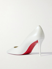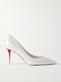 Christian Louboutin's 'Miss Z' pumps are a sleek, sophisticated choice for the modern bride. Crafted in Italy from pearlescent white leather, they have sharply pointed toes and cutaway 80mm heels that'll reveal the iconic red lacquered soles as you walk down the aisle.