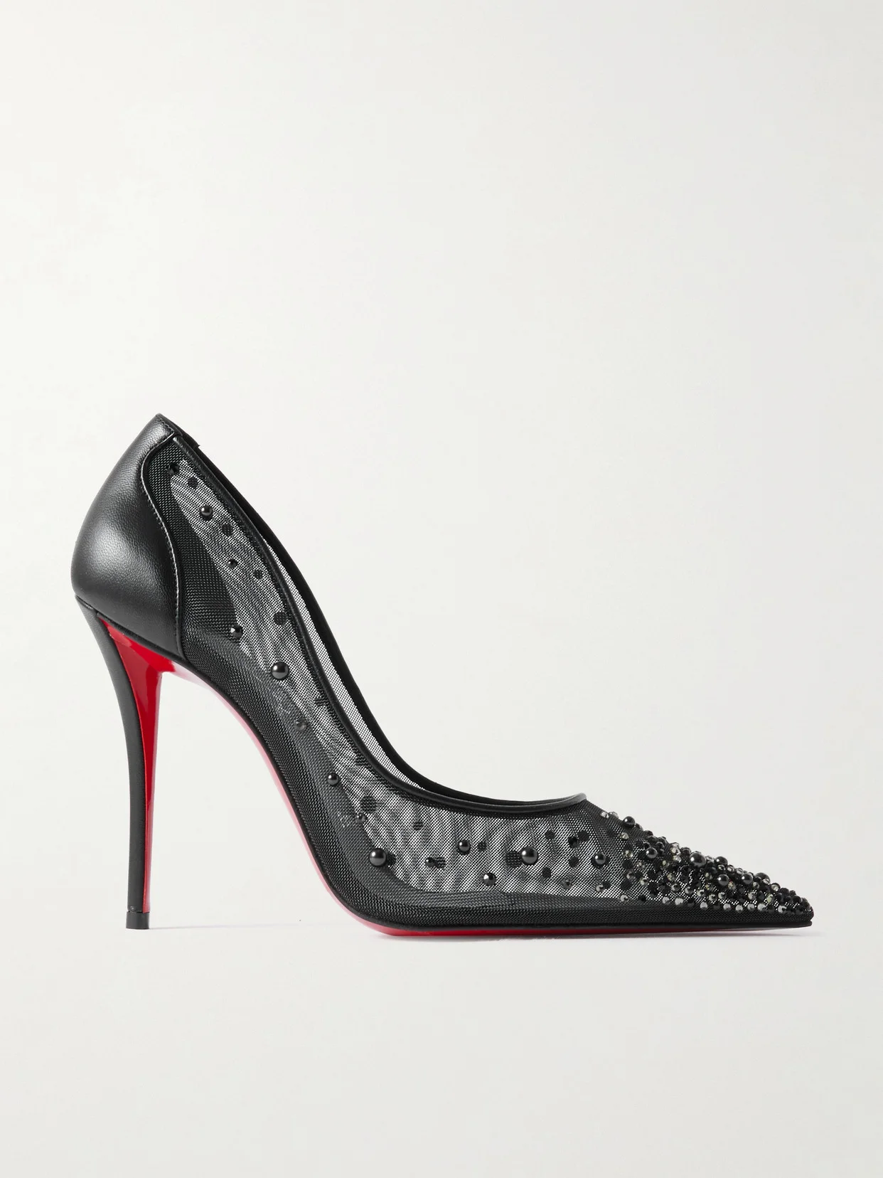 Christian Louboutin's 'Miss Z Degrastrass Perla' pumps combine delicate embellishment with the label's signature polish. Crafted from airy mesh trimmed with leather, they're adorned with faux pearls and crystals and set on a 100mm stiletto heel. The iconic red sole lends lasting impact.