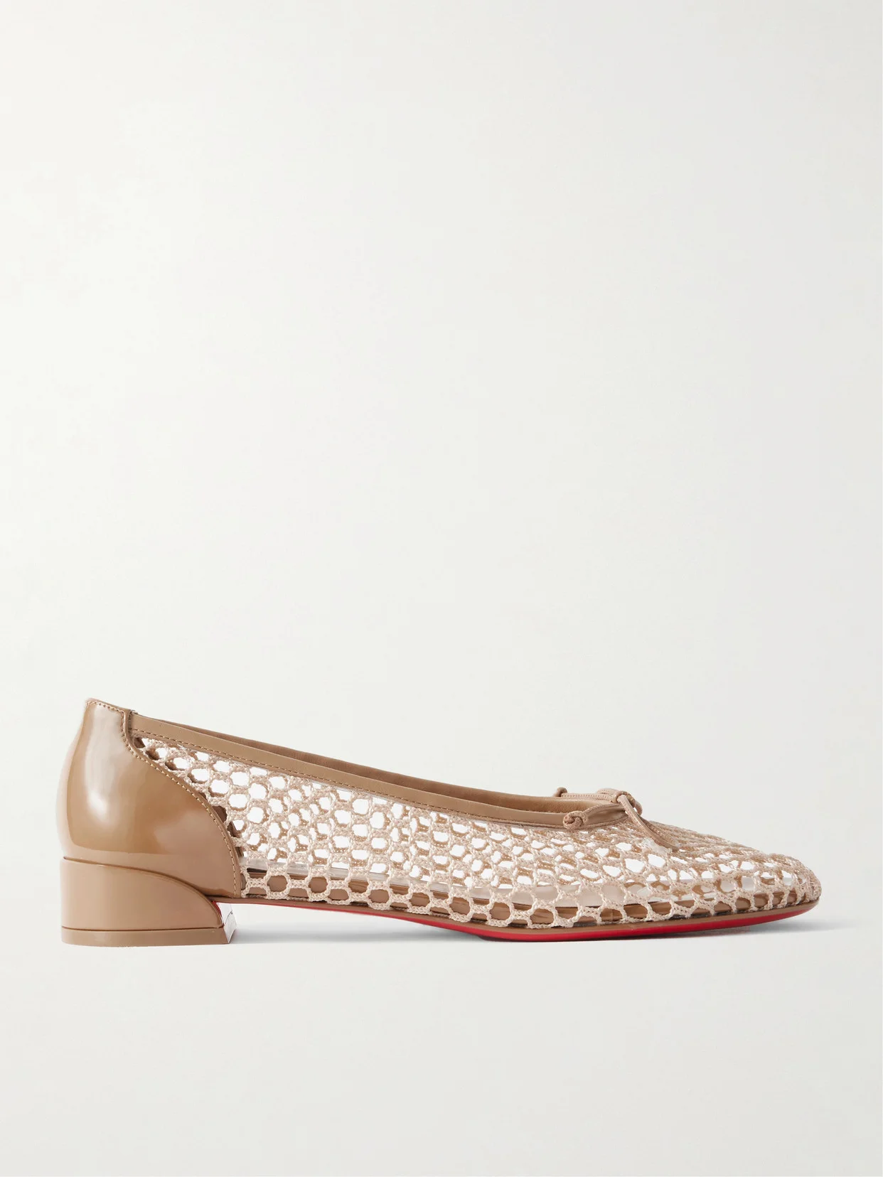 Christian Louboutin's 'Sweetie Jane' flats are a classic take on ballet styles, just with a slightly taller heel. They're made from crochet with glossy patent-leather trims and are topped with a dainty bow.