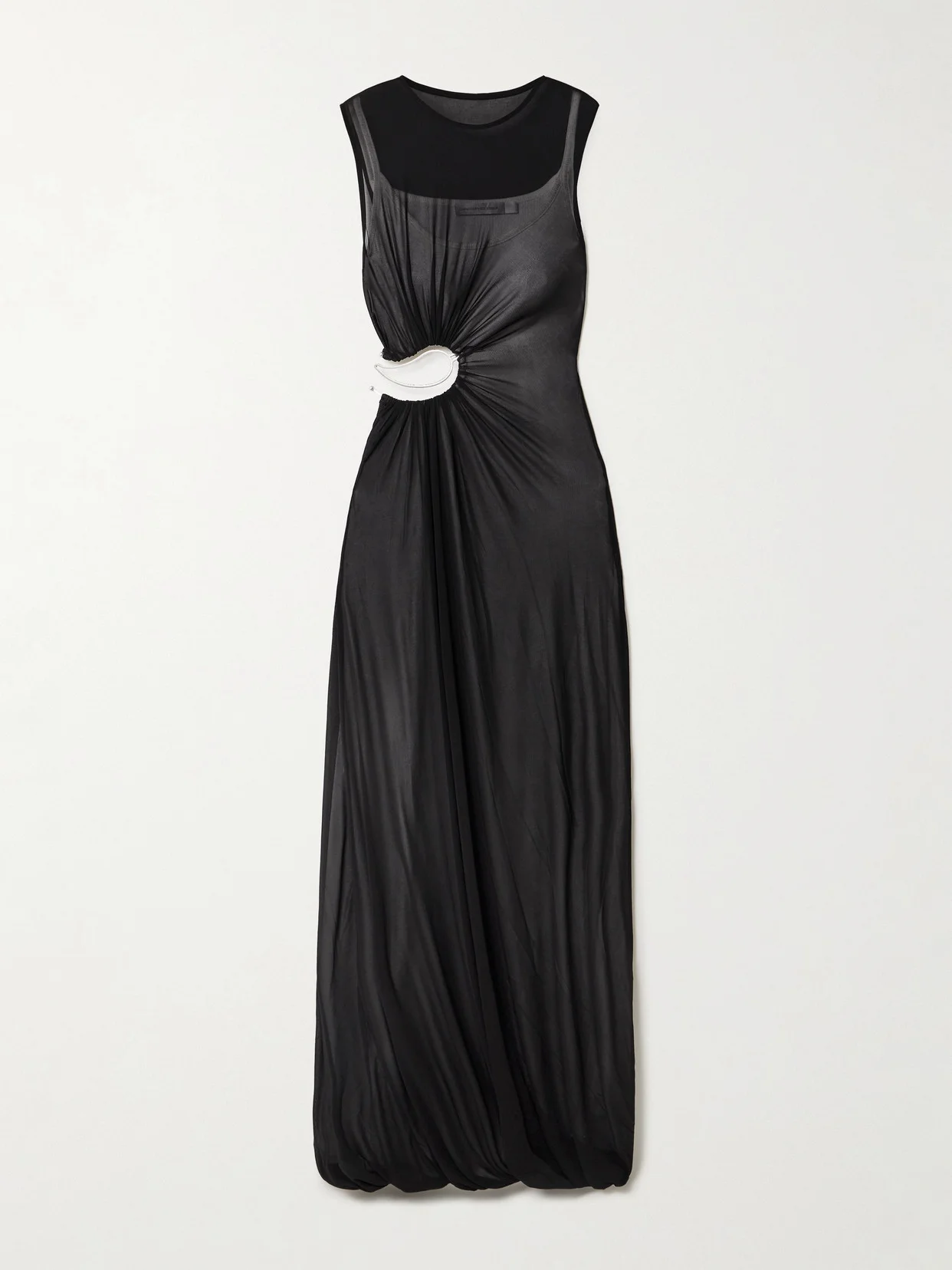 Embellished Cutout Layered Stretch-jersey Maxi Dress
