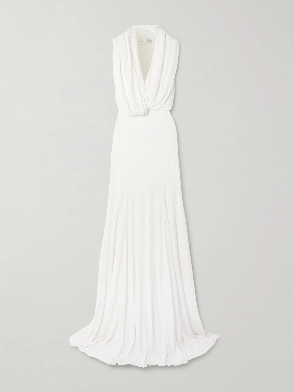 Christopher Esber's 'Ripple' gown takes its name from the beautifully fluid drape of the stretch-jersey fabric. It's designed with a plunging halter neckline and an elongated back panel that doubles as a hood. Style it with pared-back jewelry and a leather clutch.