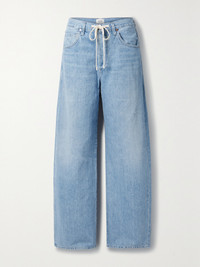 Citizens of Humanity's 'Brynn' jeans have a drawstring threaded through the high-rise waist, so you can adjust the waist without the bulk of a leather belt. They're made from organic denim and have wide legs. Style yours with a simple white tank and sandals. This product was created using Considered Materials. Find out more about NET SUSTAIN here.