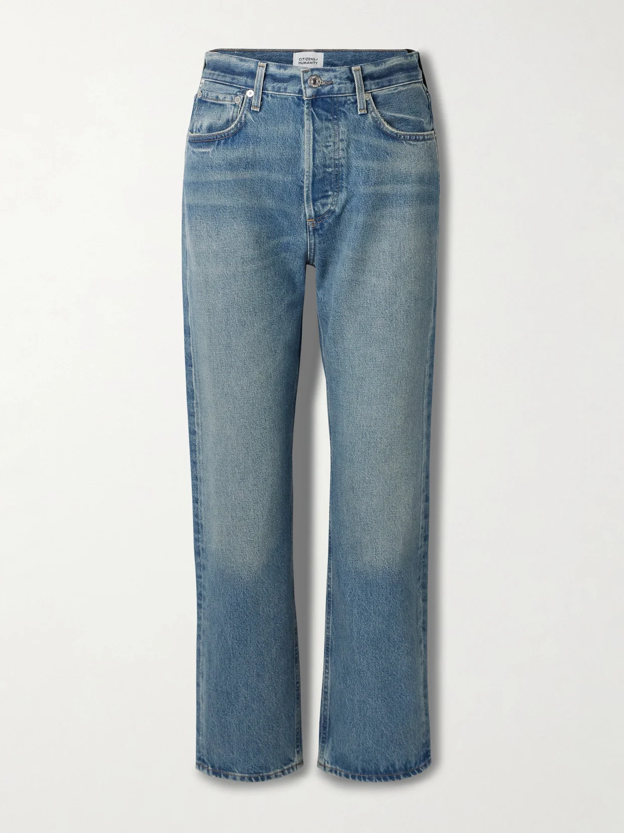 Citizens of Humanity's ‘Blaine' jeans are cut for a high-rise, straight-leg profile from rigid denim that promises to hold shape over time. The faded wash is made using an innovative bio-based indigo dye and gives them a loved-worn look. Lower-Impact Materials. This product is made using at least 50% lower-impact materials or ingredients. Find out more about our NET SUSTAIN criteria here.