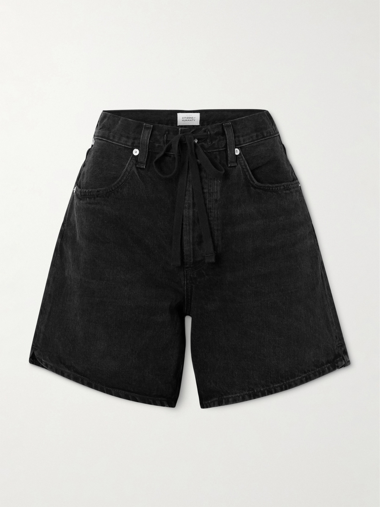 Citizens of Humanity's 'Brynn' shorts have a drawstring waist, playing on athleisure style. Cut from denim in a 'Midnight Sky' wash, they have a high rise and relaxed, wide legs. Lower-Impact Materials. This product is made using at least 50% lower-impact materials or ingredients. Find out more about our NET SUSTAIN criteria here.