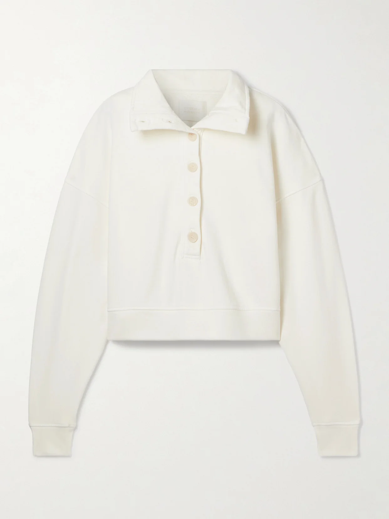 Citizens of Humanity's 'Mirelle' sweatshirt is made from cotton-jersey that has a soft, fleece backing. It's cut in a loose, cropped shape and has a ribbed funnel neck and row of buttons you can leave undone. Wear yours as a set with the coordinating 'Miro' track pants while running errands.