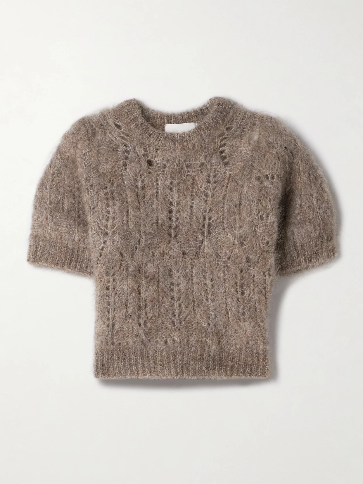 Citizens of Humanity's ‘Odette' sweater is made with generous amounts of alpaca and wool, offering lightweight warmth. It has voluminous puffed sleeves and fitted ribbed trims. Temper the airy pointelle details with a tonal camisole or bralette.