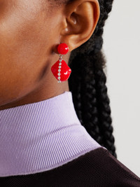 Completedworks' earrings are like miniature works of abstract art. Handmade from rhodium-plated recycled brass, they're strung with shiny resin droplets, each traced with a column of shimmering crystals.
