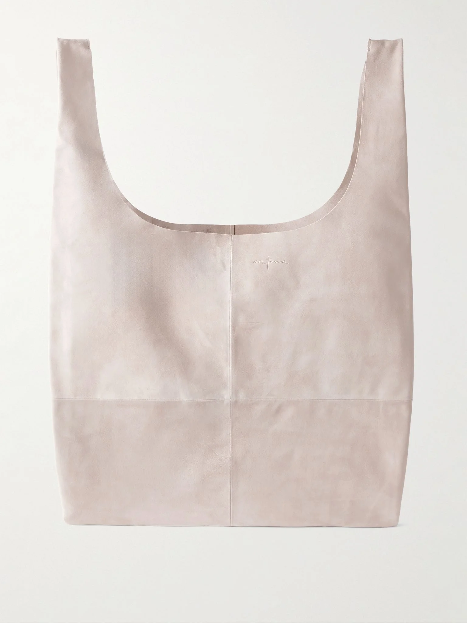 Cortana’s ‘U XL’ bag fits virtually everything you’ll need on the busiest days. Inspired by a shopping bag, it’s made from soft suede and has wide handles that thread artfully into each other to cinch the top. There's plenty of room inside for a magazine, water bottle and cardigan. Details & Care - Stone suede (Goat) - Top handles - Unlined - Open top - Comes with a dust bag