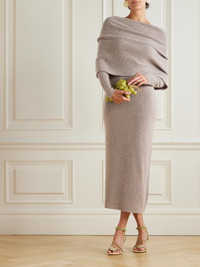 Carline off-the-shoulder wool and cashmere-blend midi dress Light brown