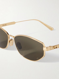 DIOR Eyewear's 'B1U' sunglasses are named after the iconic 'Cannage' quilting technique, which is mimicked through the engraving along the sleek arms. They're made from gold-tone metal in an angular oval shape and feature the 'CD' logo.