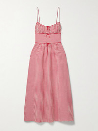 Belline Bow-detailed Gingham Recycled-seersucker Midi Dress