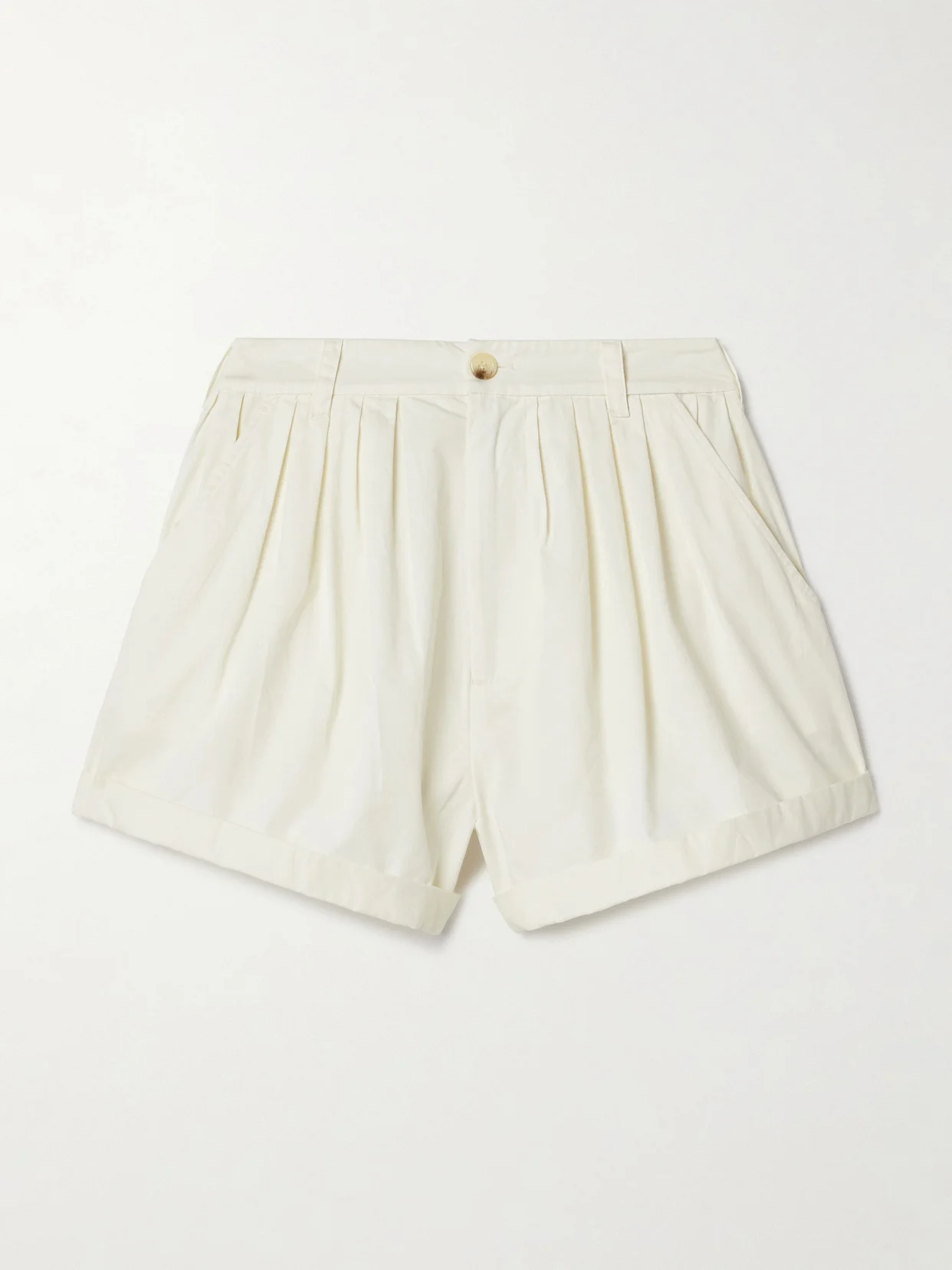 DOEN is run by a collective of women who understand the demands of modern life and design clothing to complement it. These versatile 'Paige' shorts are tailored from organic cotton-poplin and have sharp pleats from the high-rise waistband to the cuffed hems.