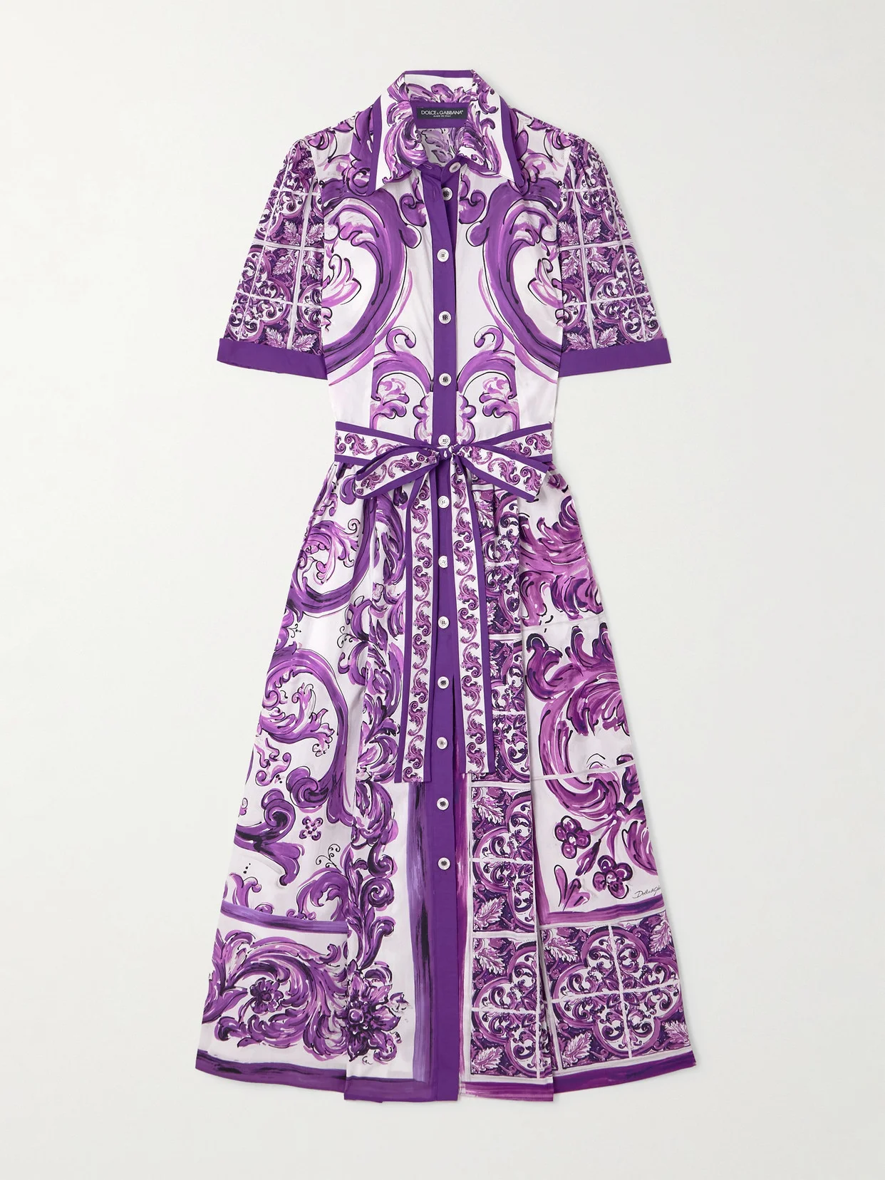 Shirt dresses are on our wishlists for the summer, and Dolce & Gabbana's take is particularly polished. Inspired by Italian Renaissance earthenware, it's printed with a Maiolica motif in purple. A belt accentuates the fit-and-flare shape.
