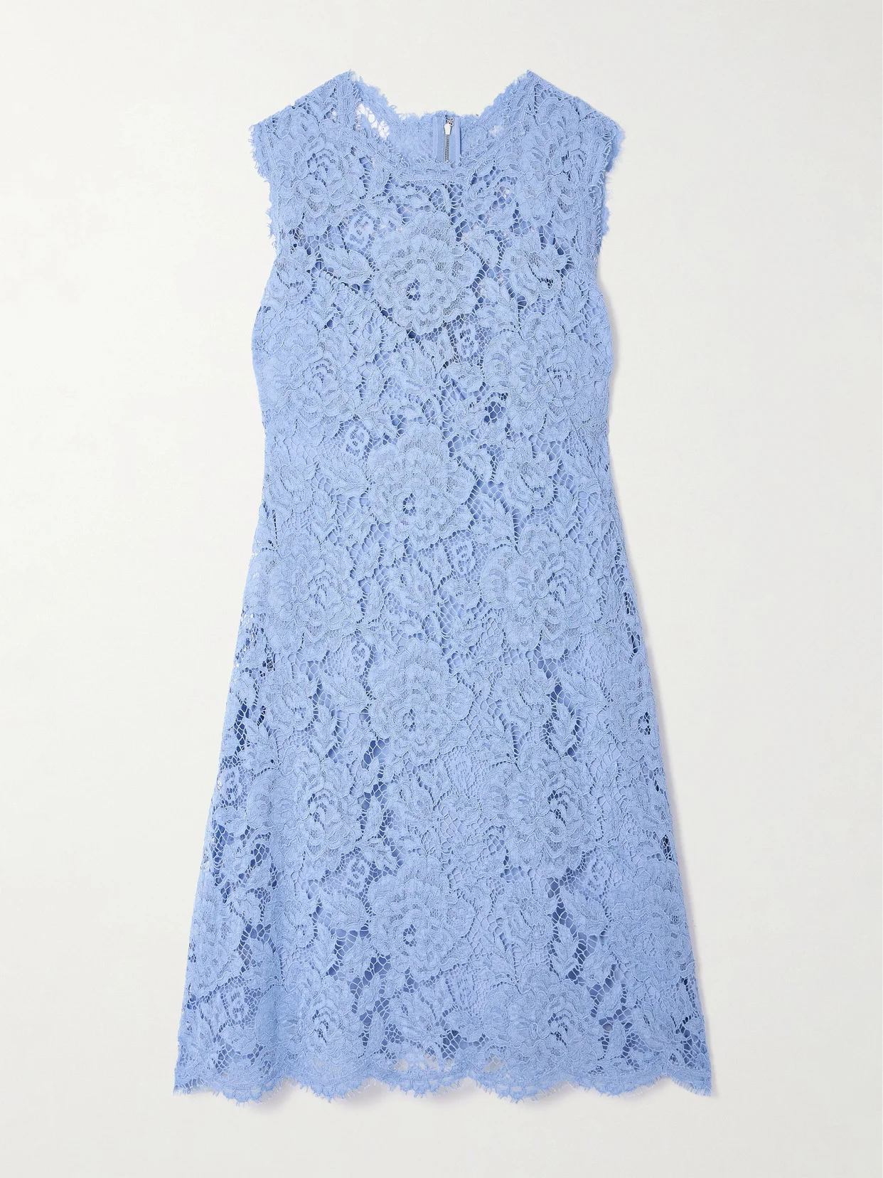 Dolce & Gabbana's mini dress has been made in Italy from corded lace in pretty periwinkle - complement the serene shade with silver accessories. It's cut for a body-skimming fit and lined for coverage. Finish the outfit with ballet flats or block heels.