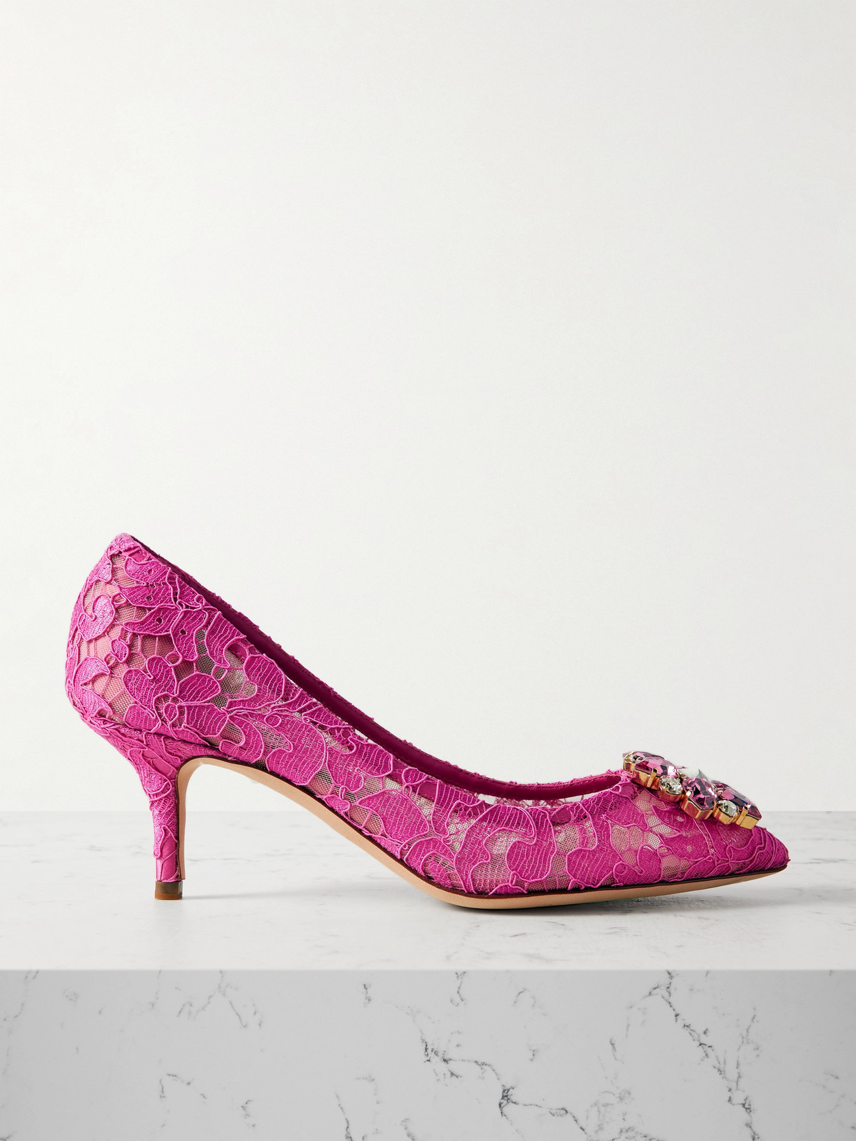 Dolce & Gabbana wrote the book on classic femininity, and these 'Decollete' pumps are pure elegance. They're made from pink lace and glisten with crystal-embellished flowers at the pointed toes.