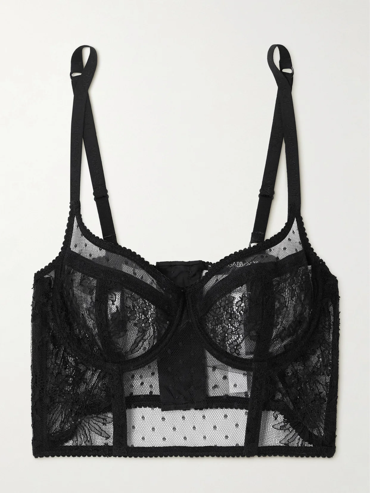 Dolce & Gabbana's bralette is the kind of style that'll make you feel powerful in your femininity when you wear it. Featured on the Fall '24 runway show, it's made from tulle embroidered with flowers and polka-dots and has underwired balconette cups and boning for structure. Adjust the satin straps to find your perfect fit.