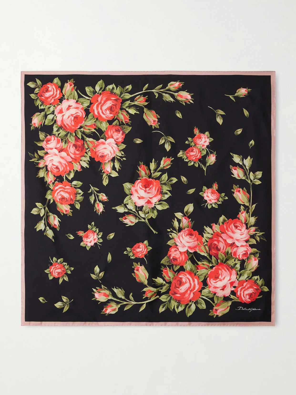 Dolce & Gabbana's scarf has been made in Italy from soft silk-twill and printed in a painterly bouquet of roses. It has an artfully hand-stitched hem and is stamped with a romantic cursive logo in the corner.