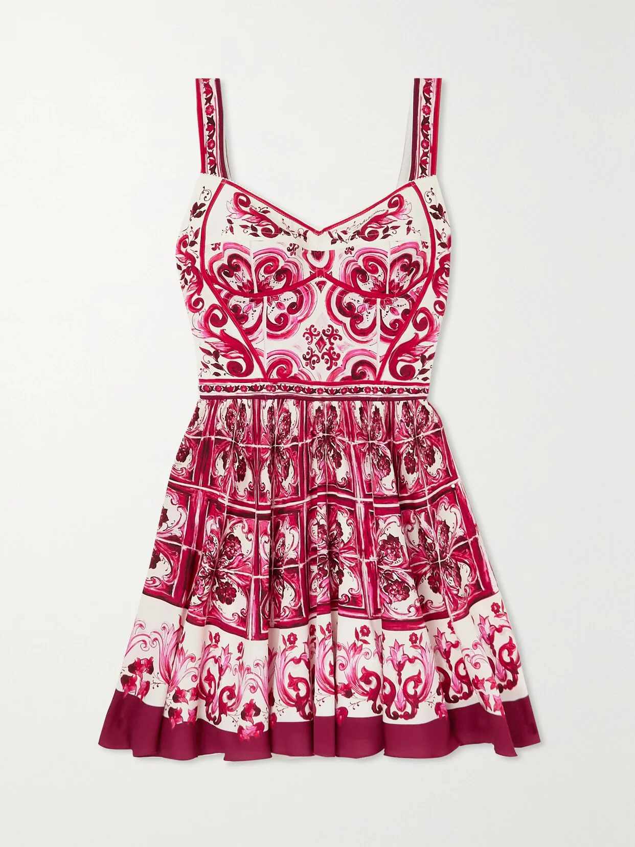 Short Majolica-print charmeuse bustier dress