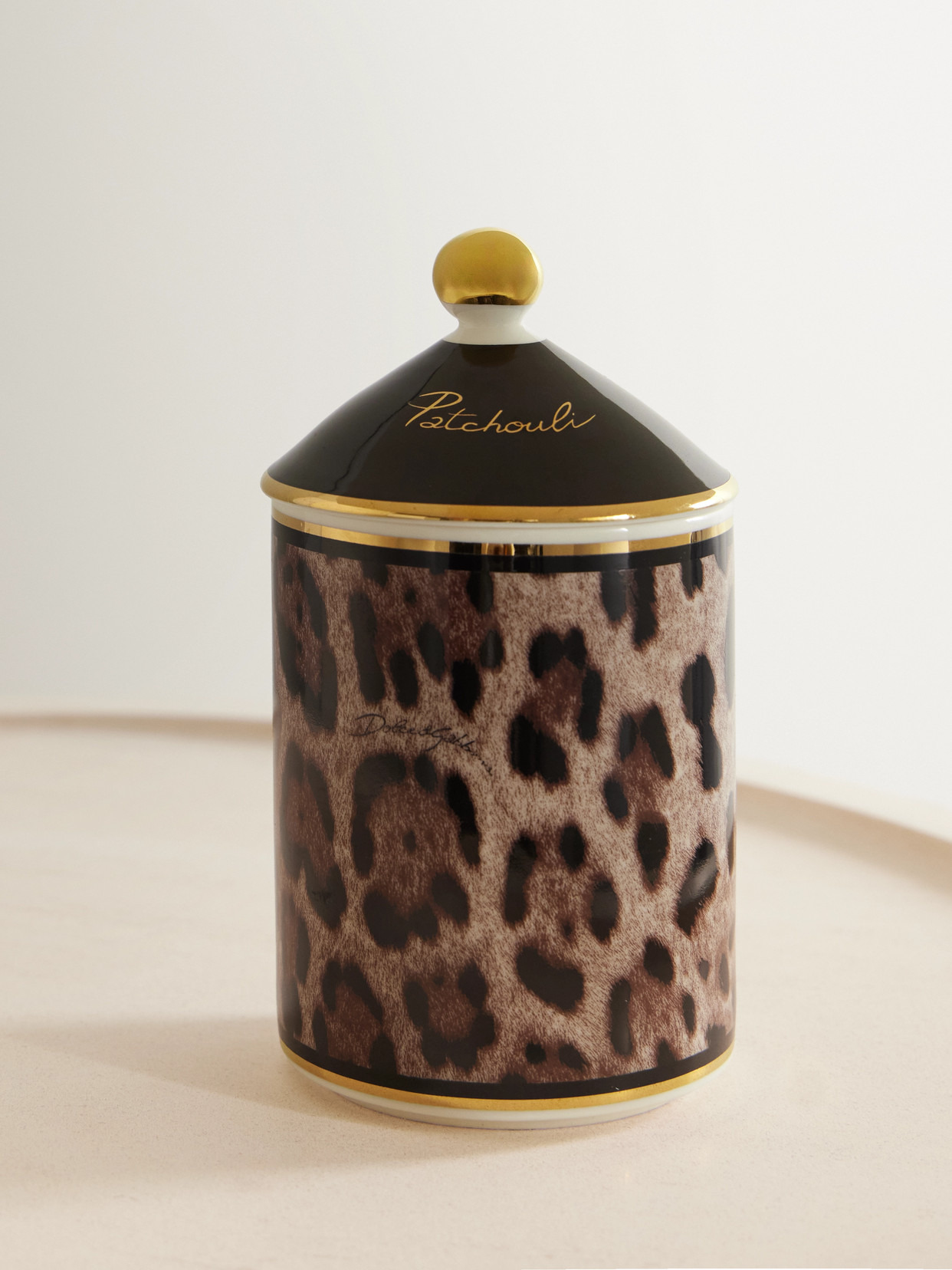 Dolce & Gabbana's 'Patchouli' candle has a rich, herbaceous scent that delivers warmth to every room with notes of soothing Vanilla and Tonka Bean. True to the brand's expressive spirit, it's hand-poured into a leopard-print porcelain vessel and accented with hand-brushed gold details.