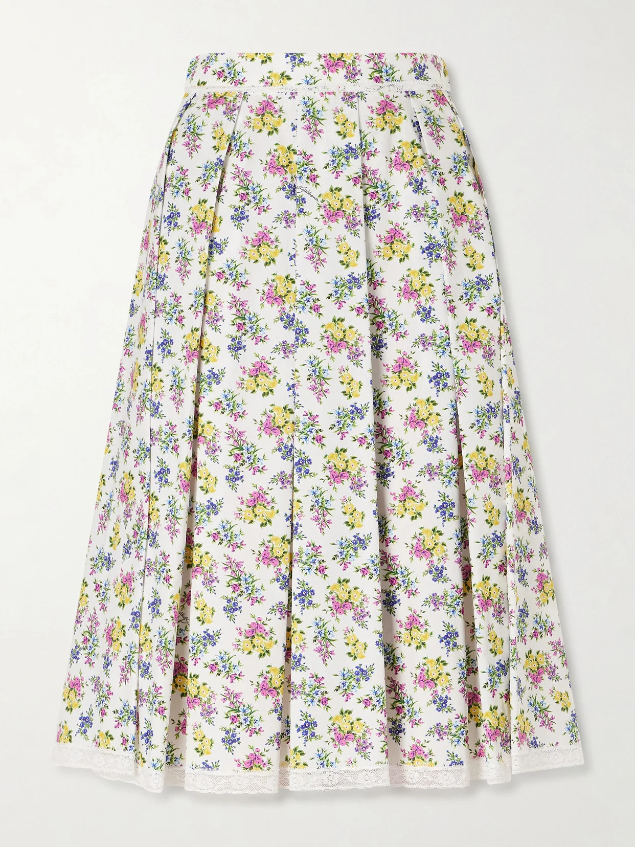 This Dolce & Gabbana skirt evokes the Sicilian hilly landscape bursting with wildflowers during springtime. Made in Italy from lightweight cotton-blend poplin, it features elegant lace trim on the hemline and waistband. Style yours with a blouse from your collection.